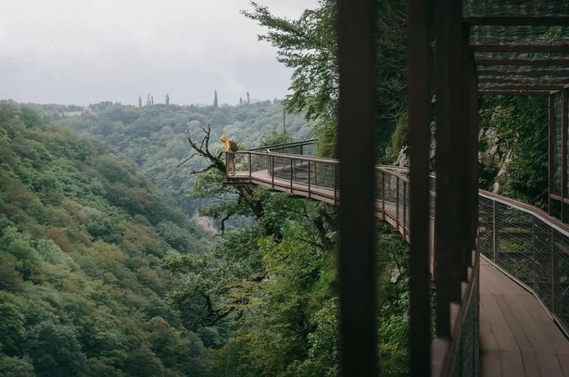 How long is Okatse Canyon walkway & Martvili — double canyon day?